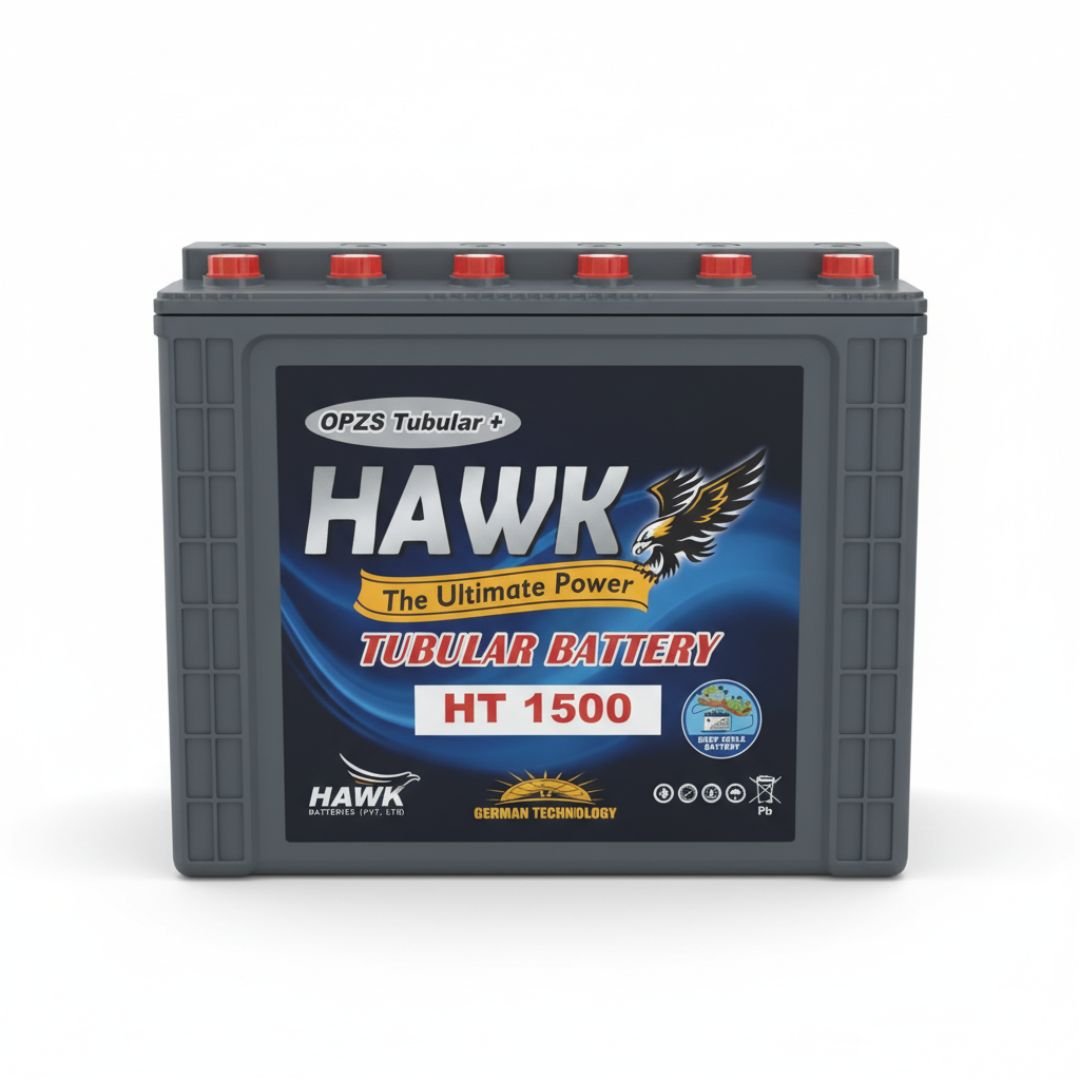 HAWK HT 1500 tubular battery ensures powerful backup performance with OPzS tubular technology. Best suited for homes and businesses needing stable long-duration power.